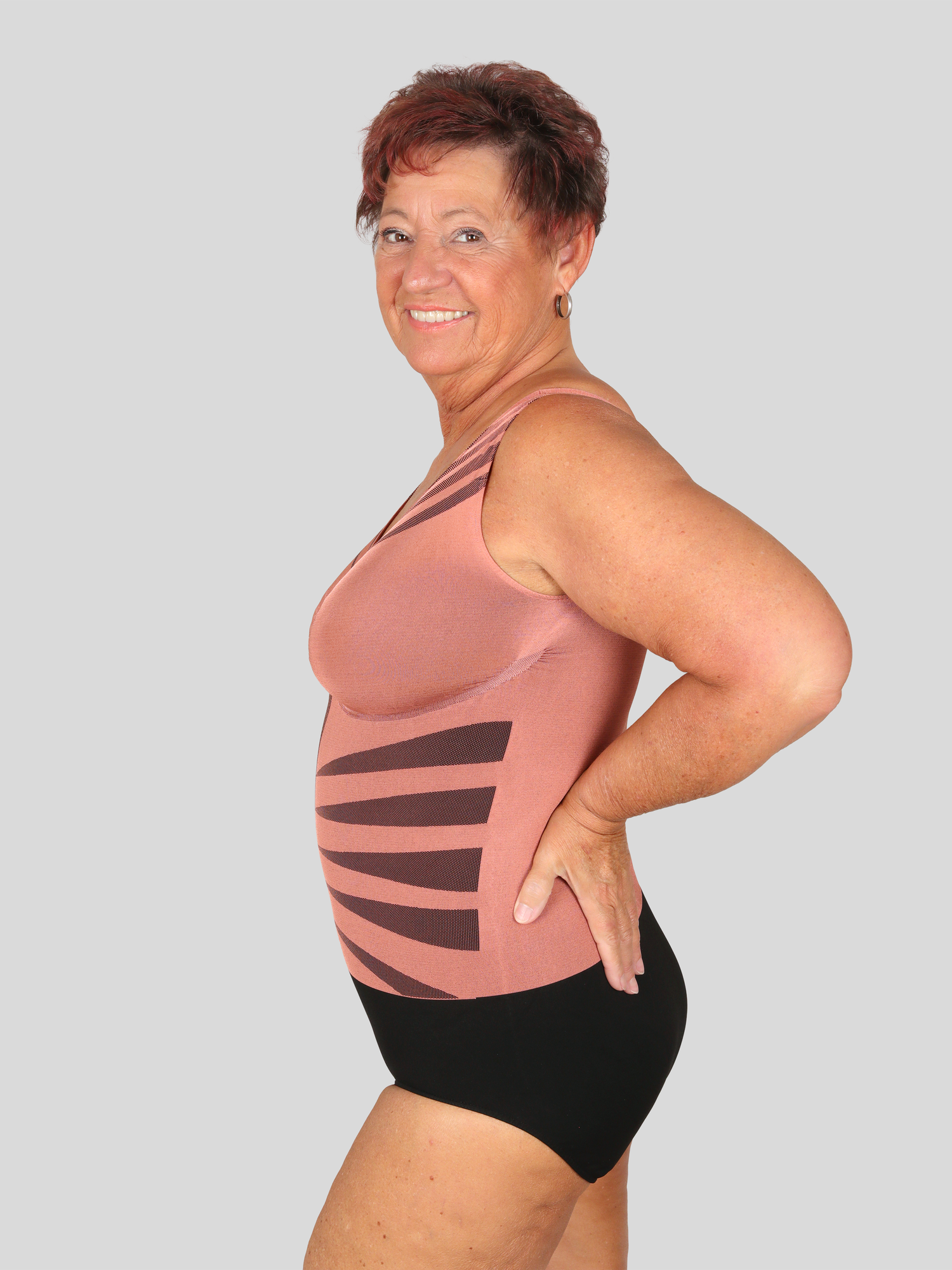 - Optische Straffung der Figur, schmale Taille und flachen Bauch