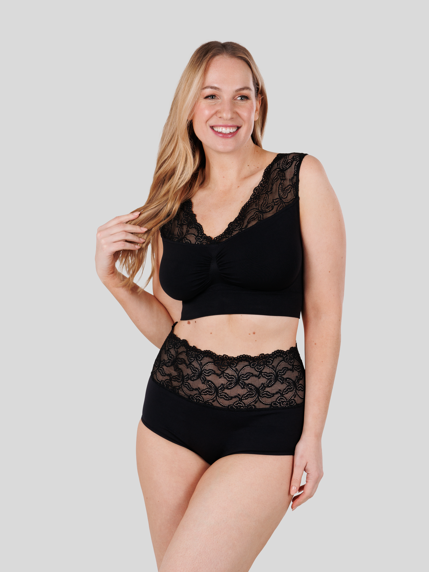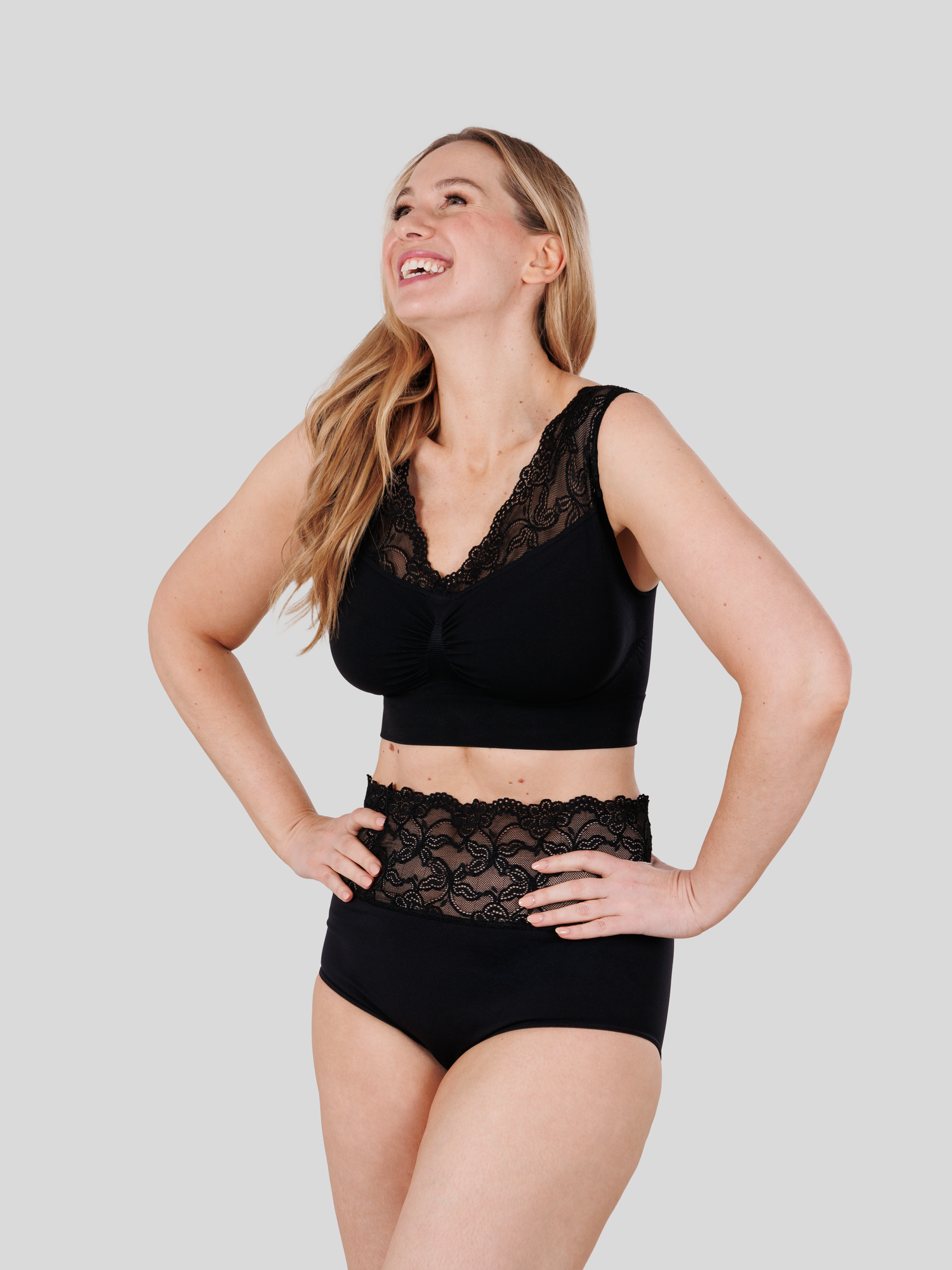 Der weich gestrickte Büstenbereich formt und hält deinen Busen sanft und sorgt so für ein gutes Gefühl. Die weich gestrickten Zonen im Rückenbereich stärken diesen zart und angenehmen.