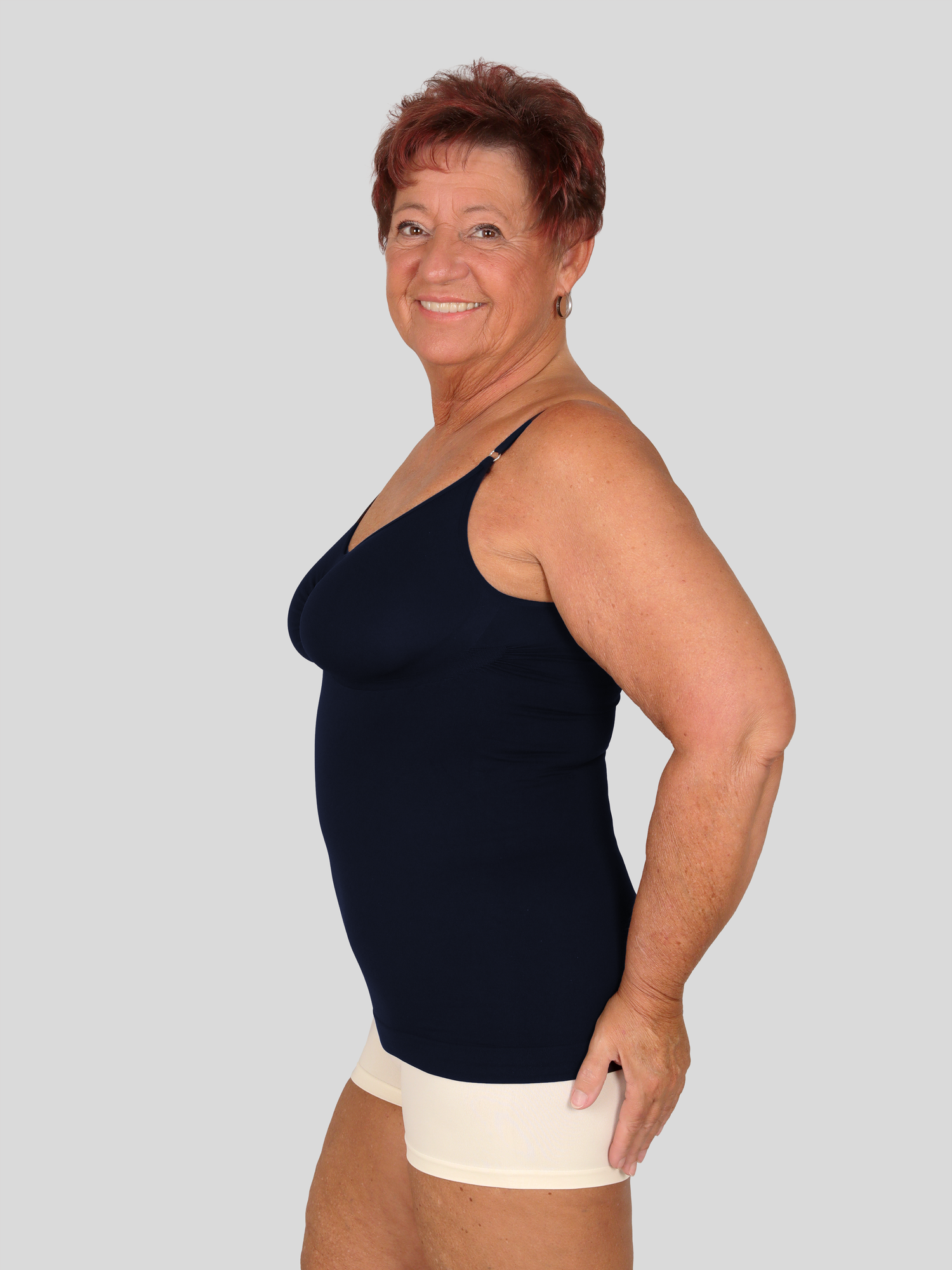 Das figurformende Top aus besonders weichem, glatten Garn mit Push-Up-Zone, R-Ausschnitt und einer modernen Raffung schmeichelt deiner Figur. Dieses lässt sich sehr angenehm tragen und sorgt für einen komfortablen Sitz.