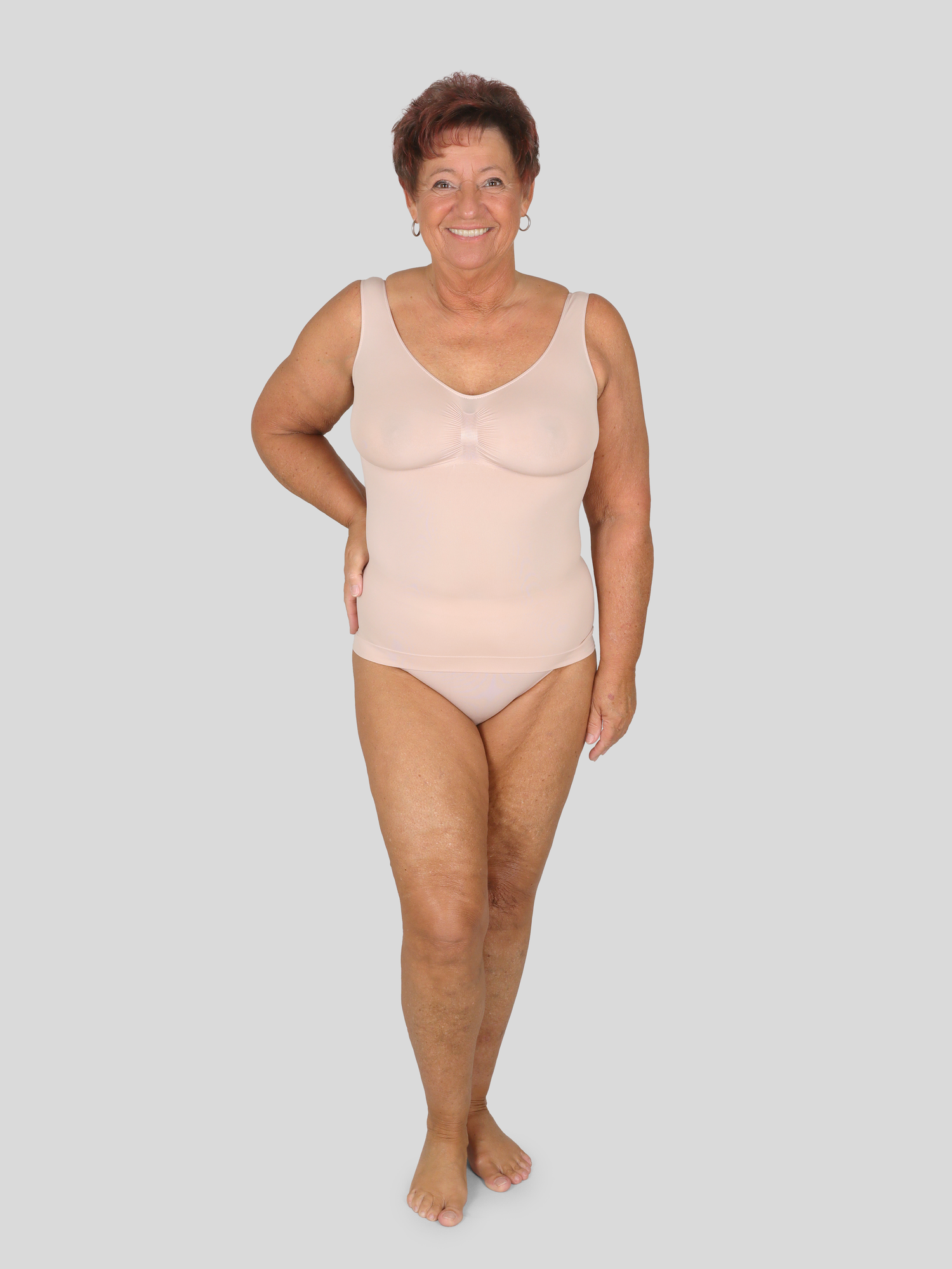 Die breiten Komfortträger schneiden nicht ein und optimieren den Halt im Büstenbereich. Kleinere Bauch-, Magen-, Taille- und Hüft-Schwachstellen werden sanft umverteilt sowie abgedeckt und sorgen so für ein gutes Gefühl. Weich gestrickte Cups umschließen deinen Busen wie eine sanfte Umarmung.