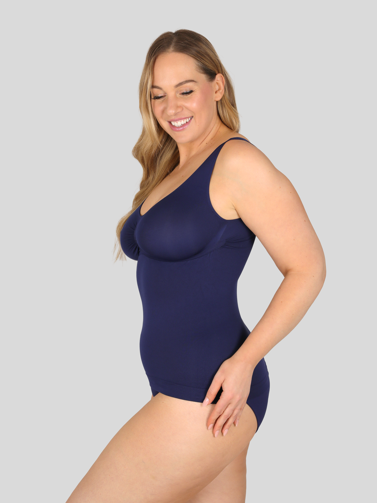 Die breiten Komfortträger schneiden nicht ein und optimieren den Halt im Büstenbereich. Kleinere Bauch-, Magen-, Taille- und Hüft-Schwachstellen werden sanft umverteilt sowie abgedeckt und sorgen so für ein gutes Gefühl. Weich gestrickte Cups umschließen deinen Busen wie eine sanfte Umarmung.