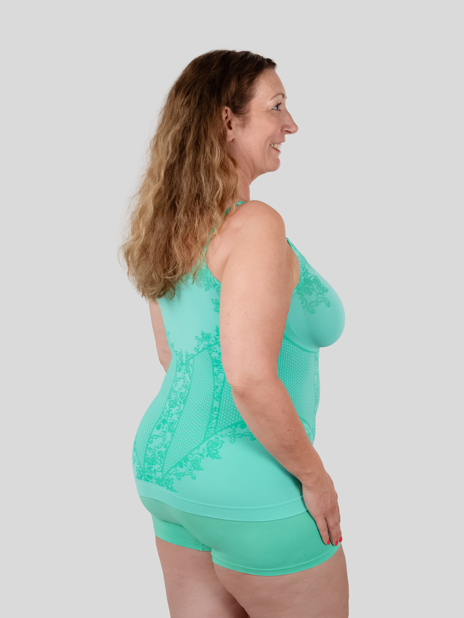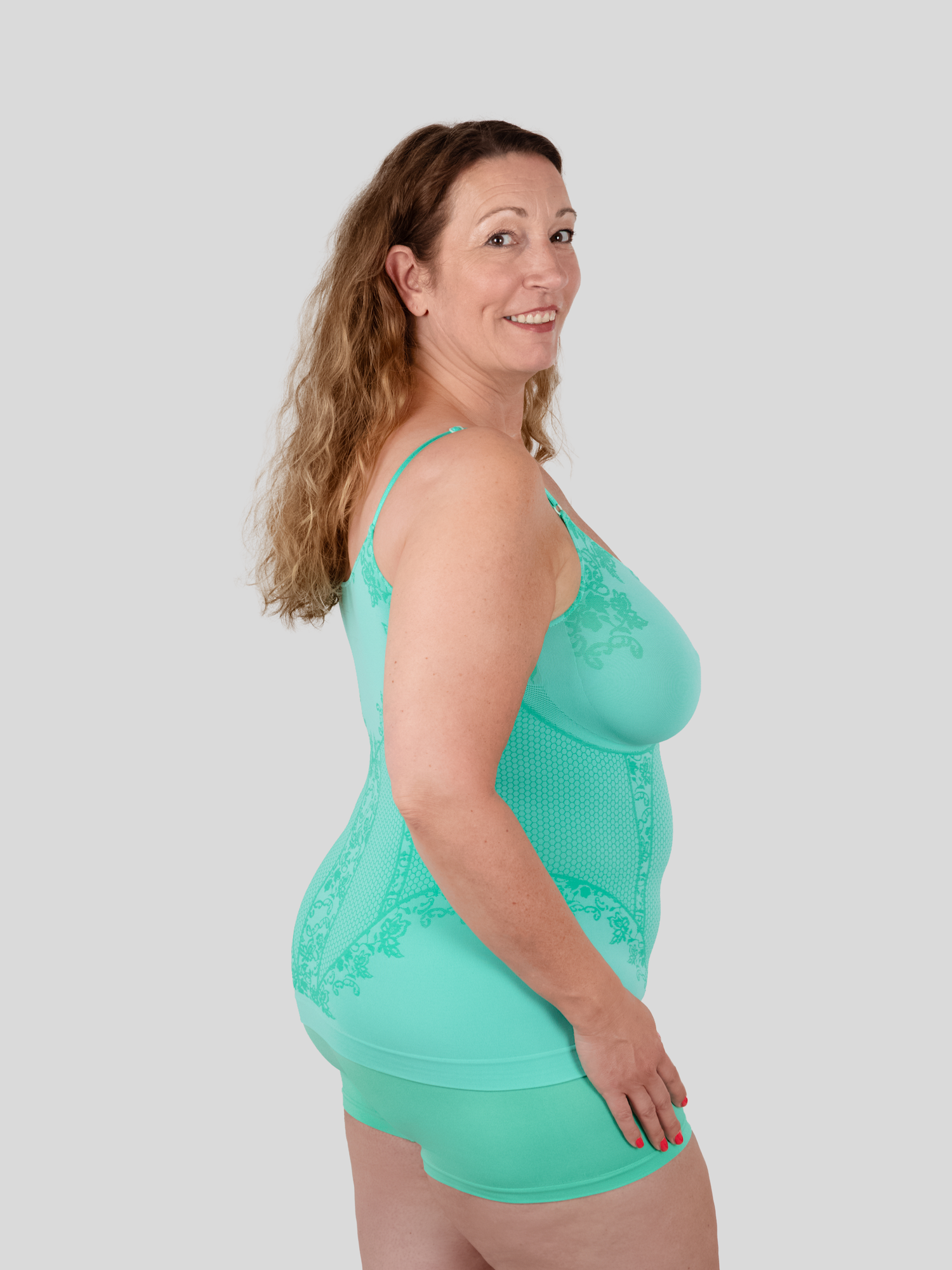 Kleinere Bauch-, Magen-, Taille- und Hüft-Schwachstellen werden sanft umverteilt und abgedeckt und sorgen so für ein sicheres und gutes Gefühl. Die weich gestrickten Cups umschließen deinen Busen sanft.