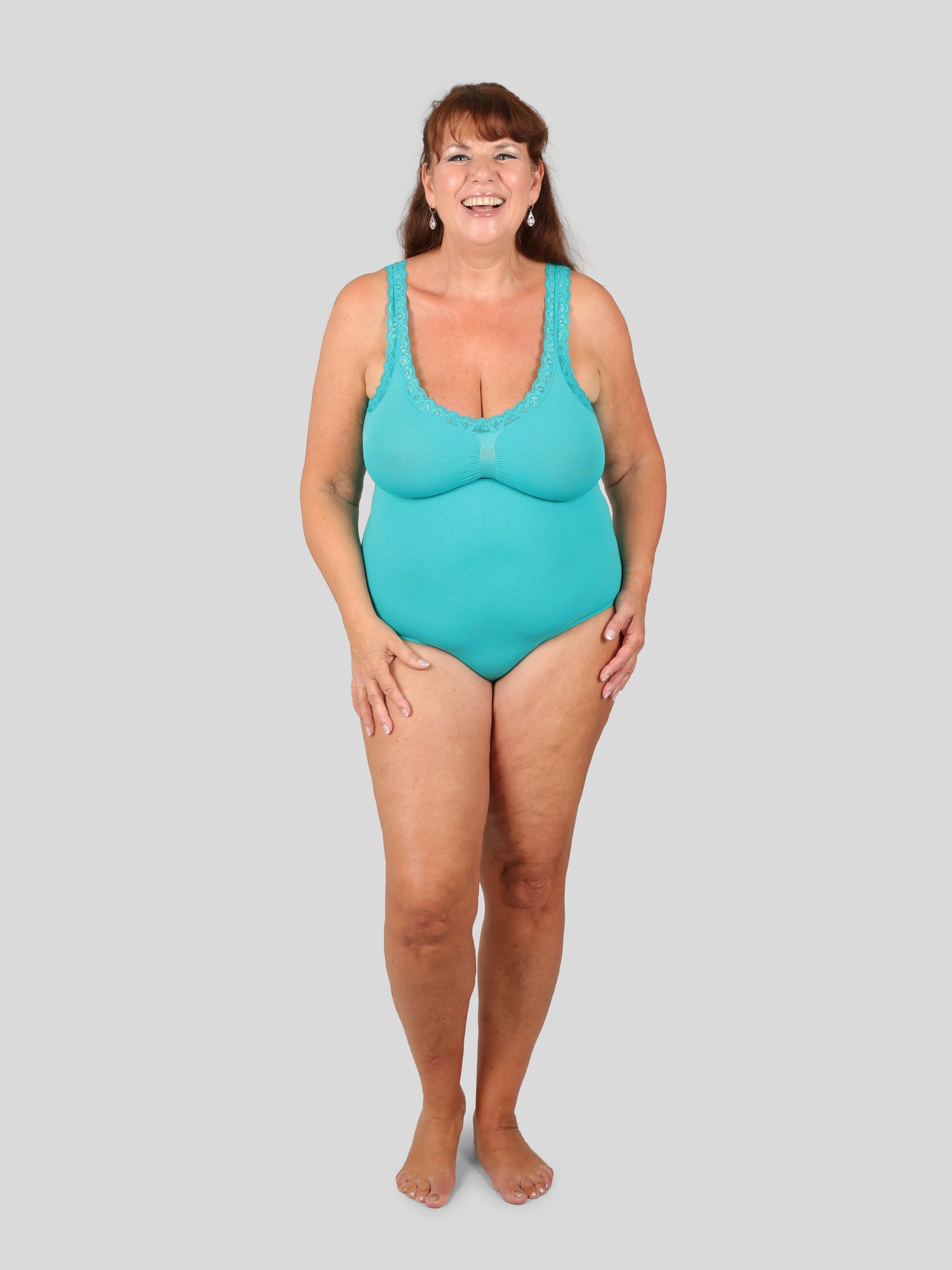 Kleinere Bauch-, Magen-, Taille- und Hüft-Problemzonen werden sanft umverteilt und optisch in eine einheitliche Linie gebracht und sorgen so für ein gutes Gefühl. Weich gestrickte Cups halten deinen Busen leicht und zart.