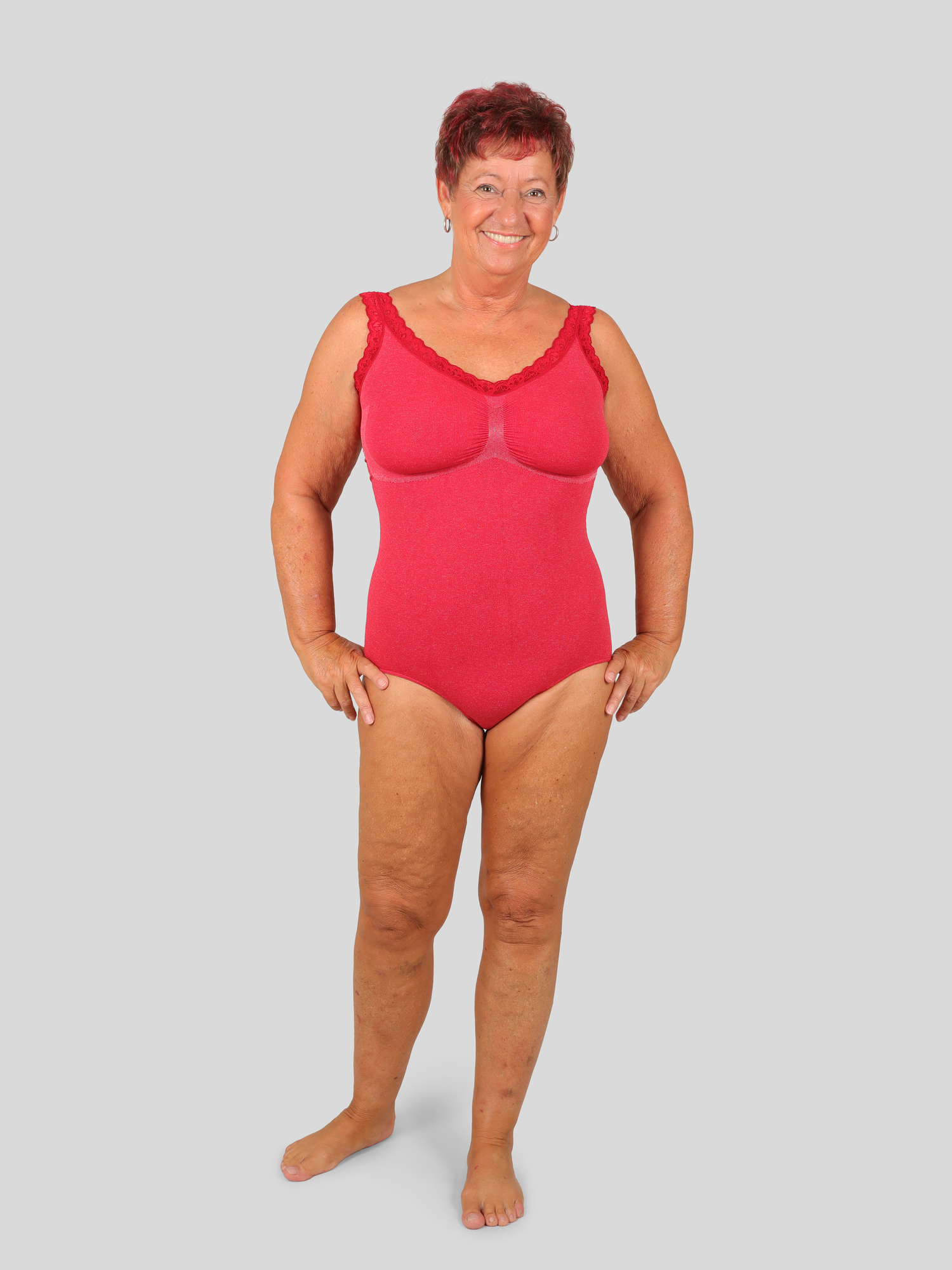 Kleinere Bauch-, Magen-, Taille- und Hüft-Problemzonen werden sanft umverteilt und optisch in eine einheitliche Linie gebracht und sorgen so für ein gutes Gefühl. Weich gestrickte Cups halten deinen Busen leicht und zart.