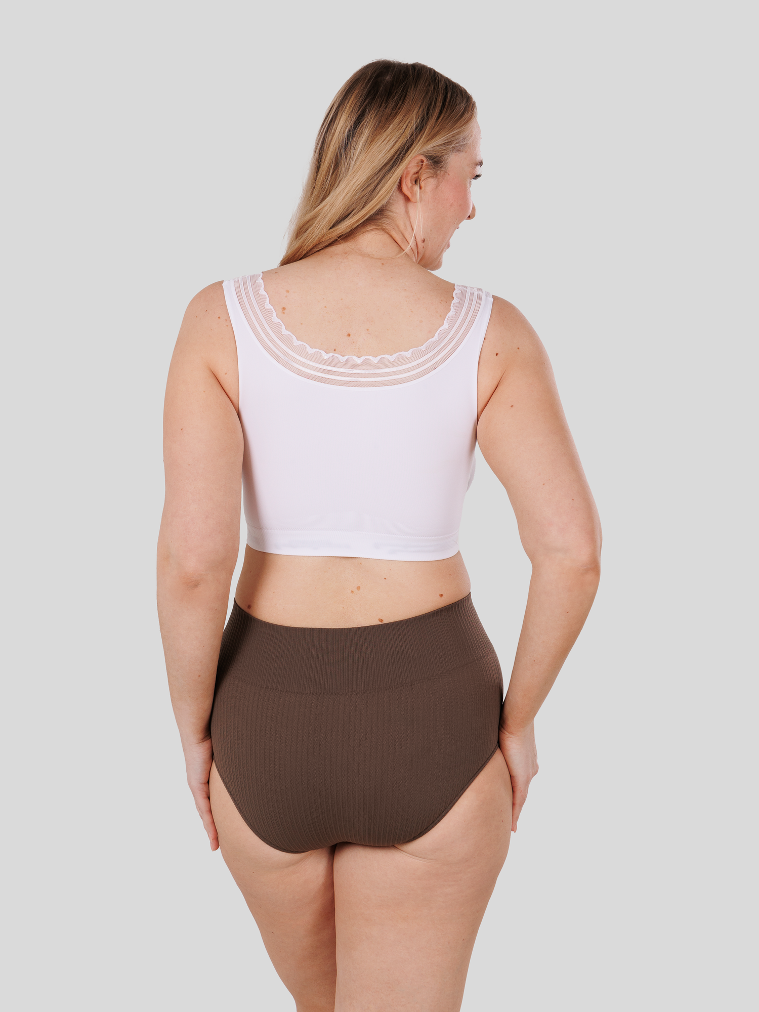 Wir verzichten auf unbequeme Bügel und Verschlüsse. Dank des bi-elastischen Materials bietet das Bustier zudem höchsten Tragekomfort und Formgebung, da es sich deinem Körper anpasst.