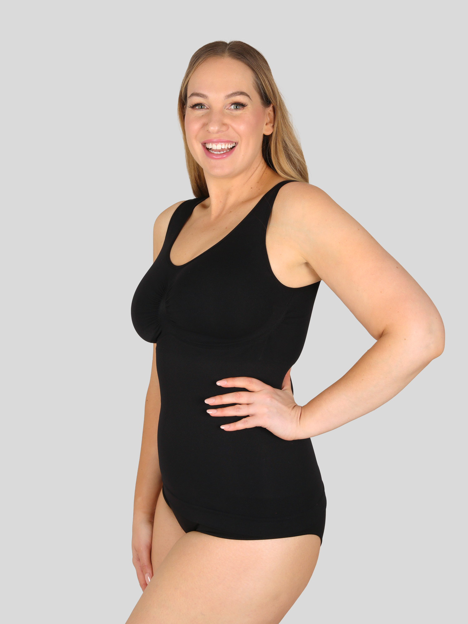 - Optische Straffung der Figur und wohlgeformten, natürlichen Busen