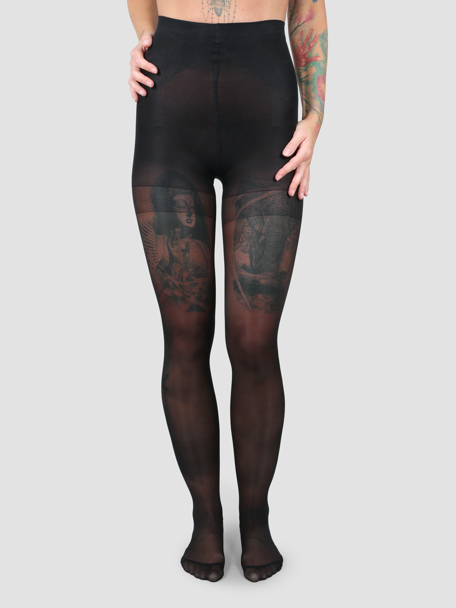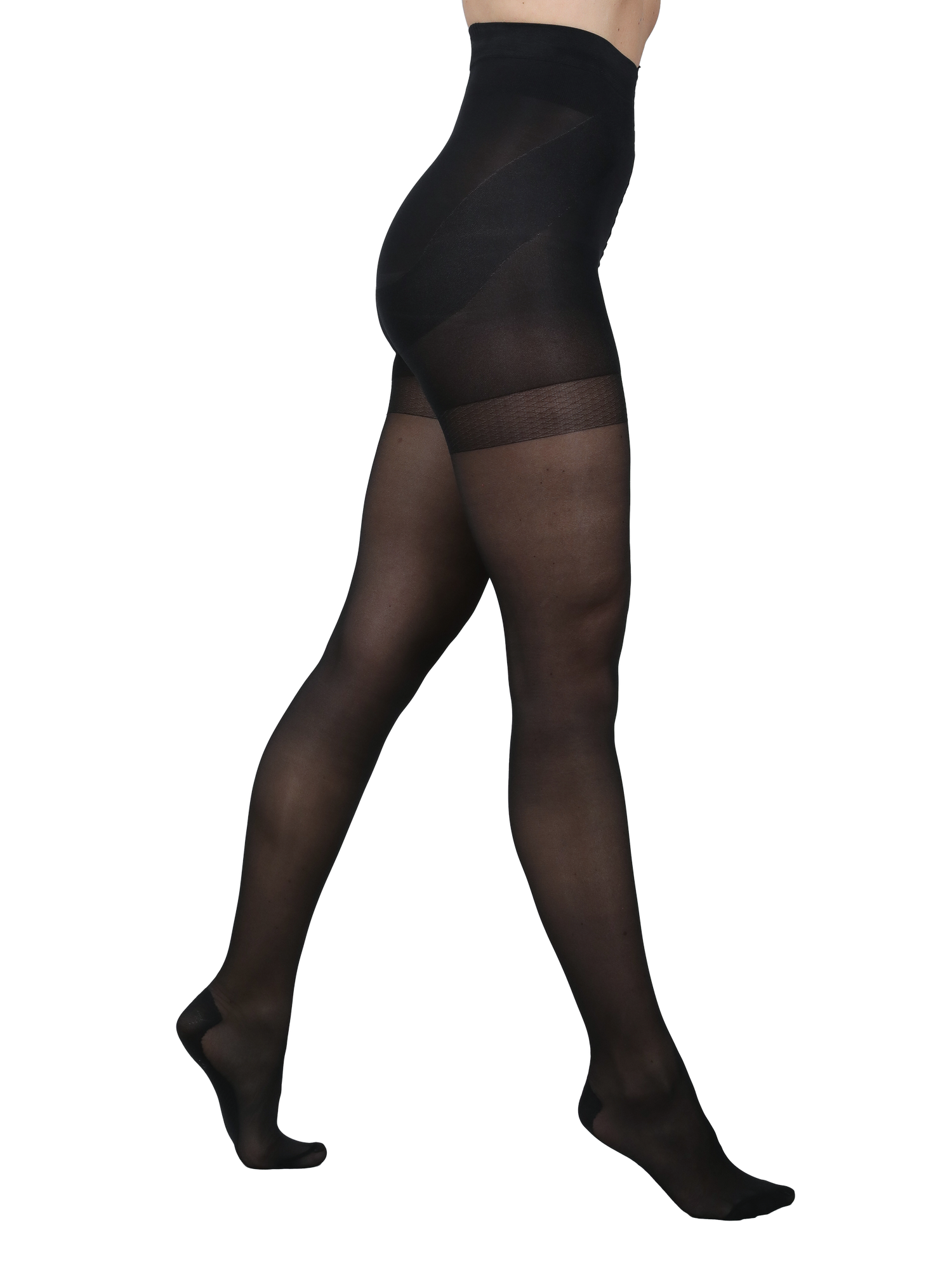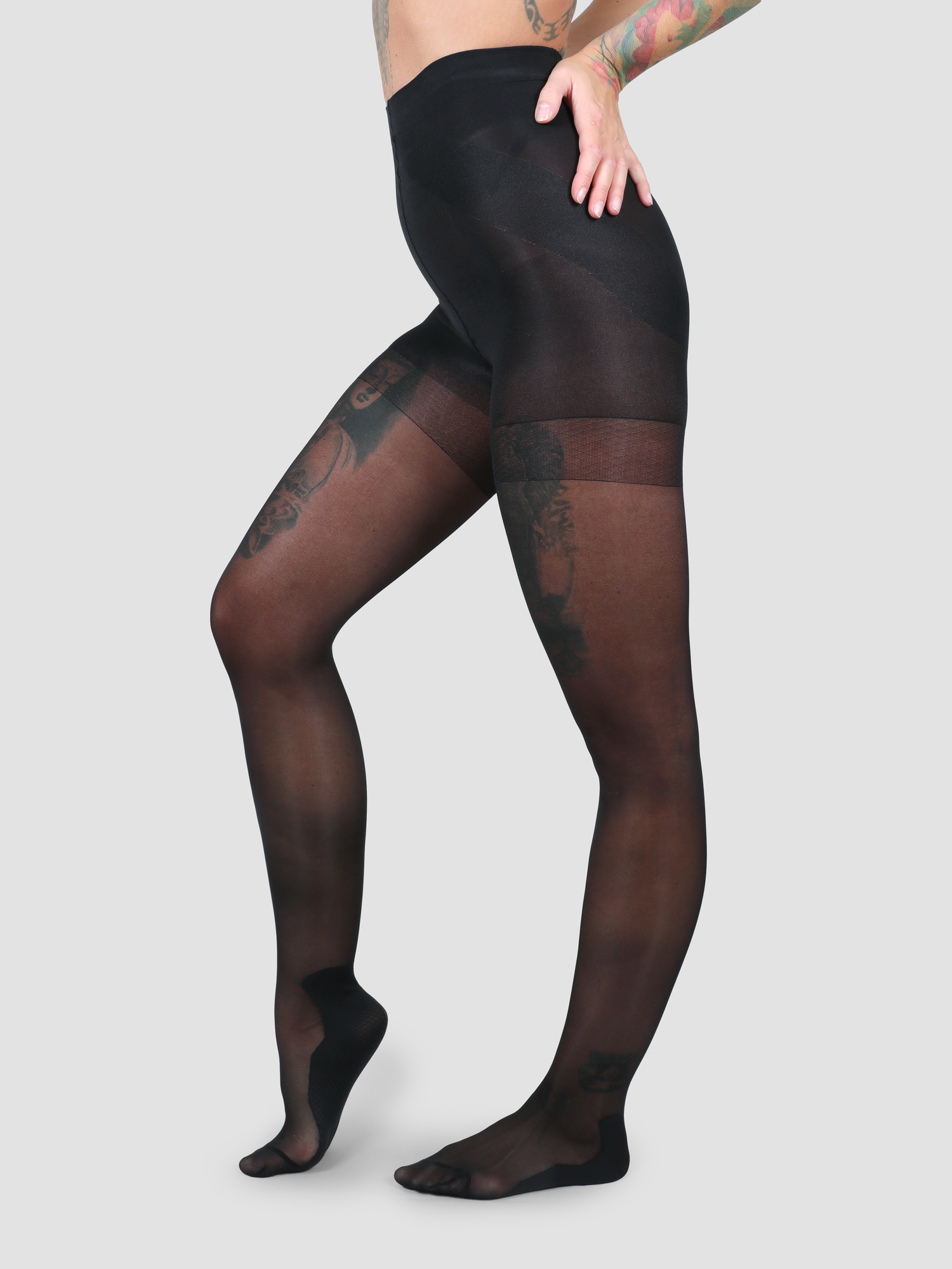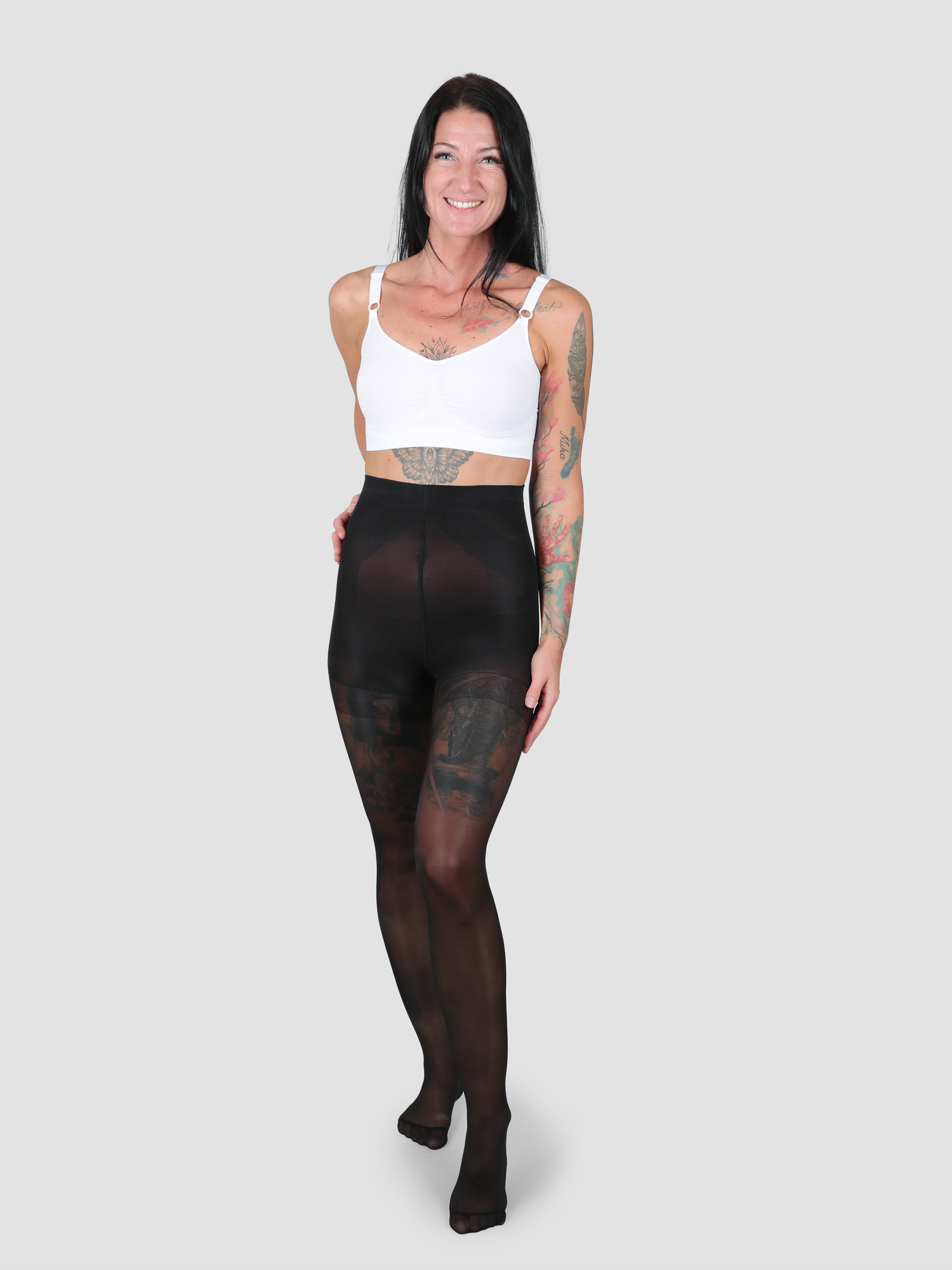 Die Strumpfhose sorgt optisch für einen flacheren Bauch, straffere und schlankere Beine und die Po-Push-Up-Zone definiert zudem deine Po-Kontur.