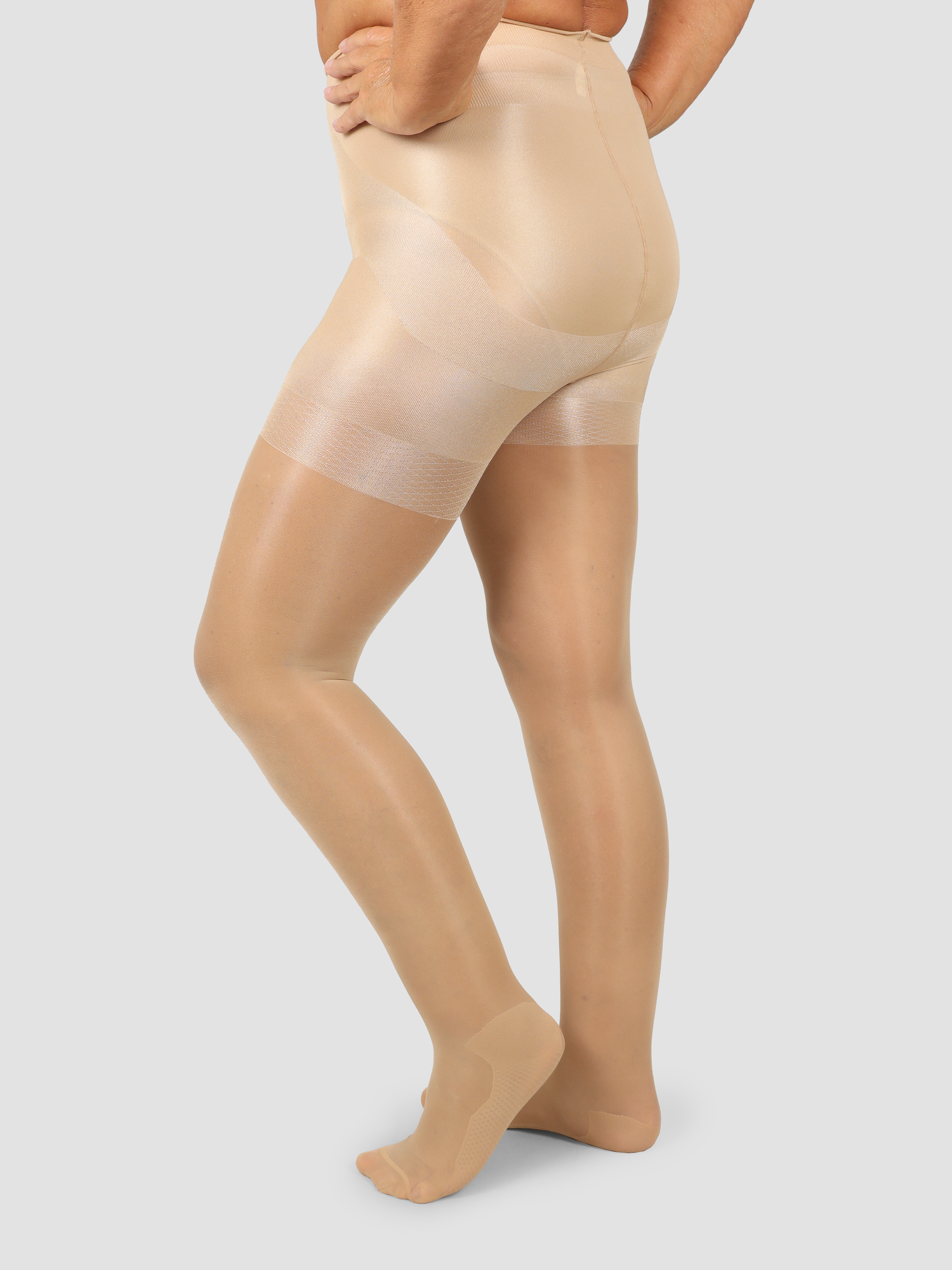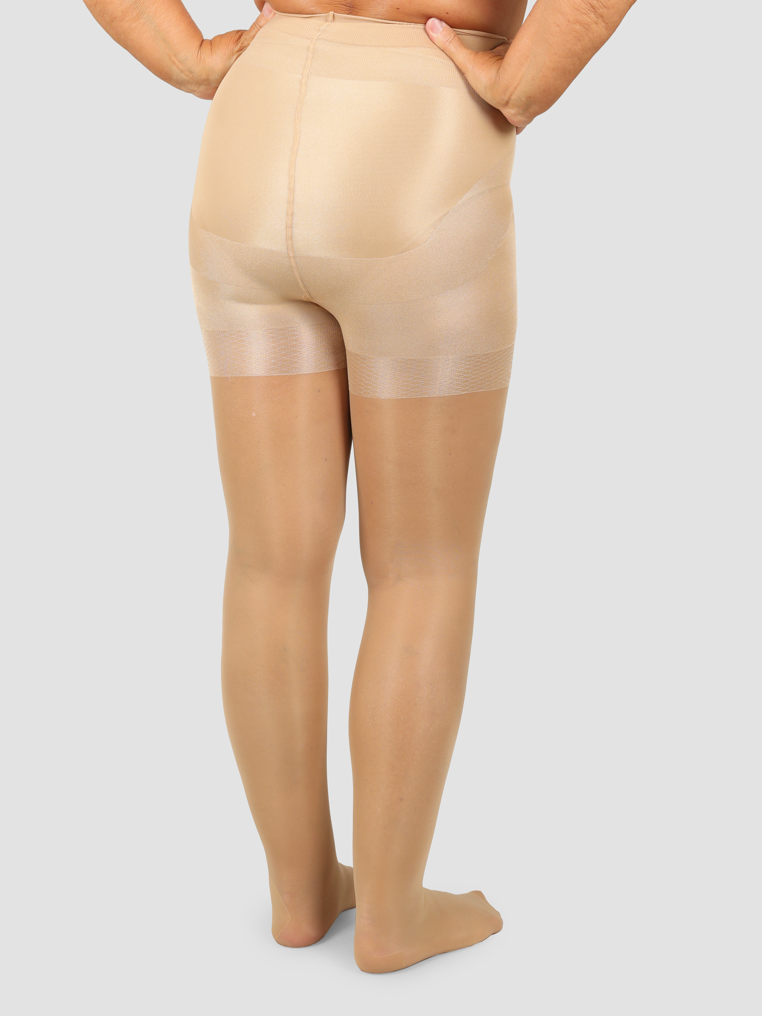 Die Strumpfhose sorgt optisch für einen flacheren Bauch, straffere und schlankere Beine und die Po-Push-Up-Zone definiert zudem deine Po-Kontur.