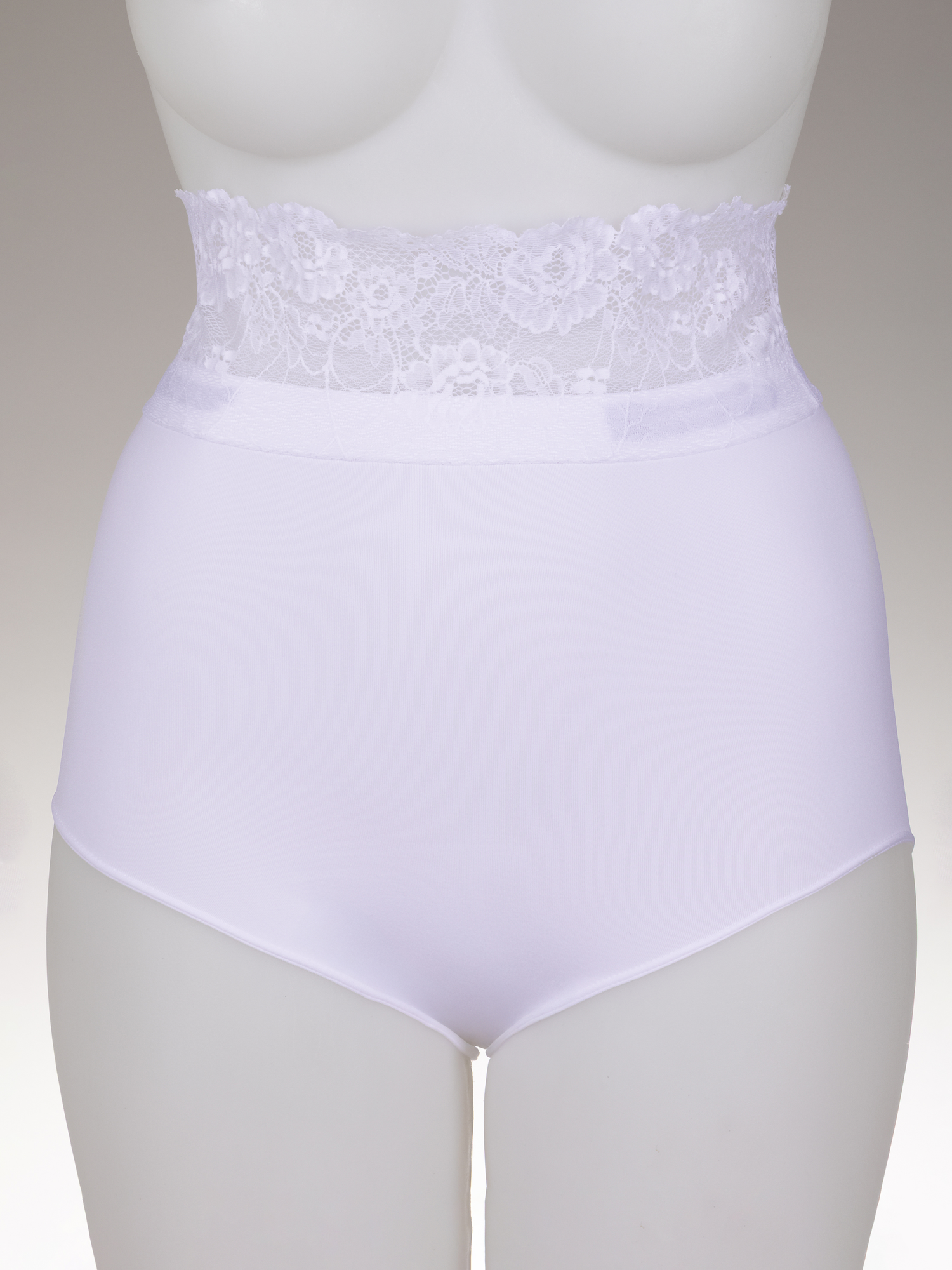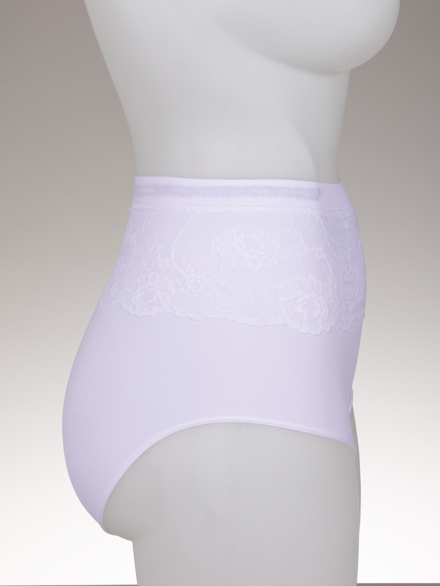 Einen besonderen Blickfang bietet die elegante Spitze am oberen Bund, der Slip kann sowohl als Taillenslip oder durch die umklappbare Spitze auch als magenhoher Slip getragen werden. Kaschiert wunderschön. Der weich gestrickte Po-Bereich optimiert sanft dein Gesäß, das vollständig vom Slip bedeckt wird.
