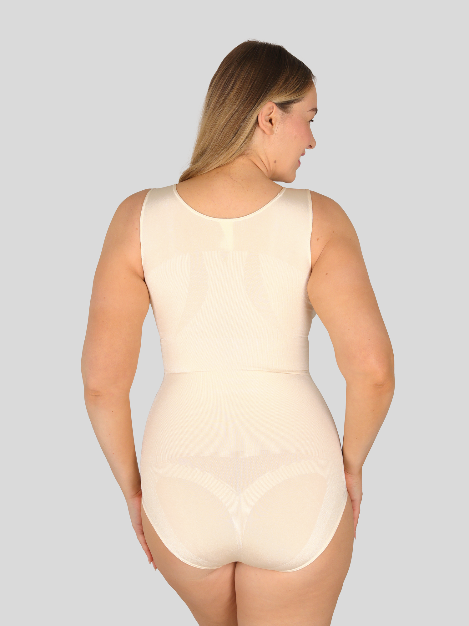 Der Body formt und unterstreicht deine Figur durch eine sehr starke Bauchzone mit zusätzlicher optischer Taillenformung (eingestrickte Zonen). Bauch-, Magen-, Taille- und Hüft-Problemzonen werden dadurch hervorragend umverteilt und optisch in eine einheitliche Linie gebracht.