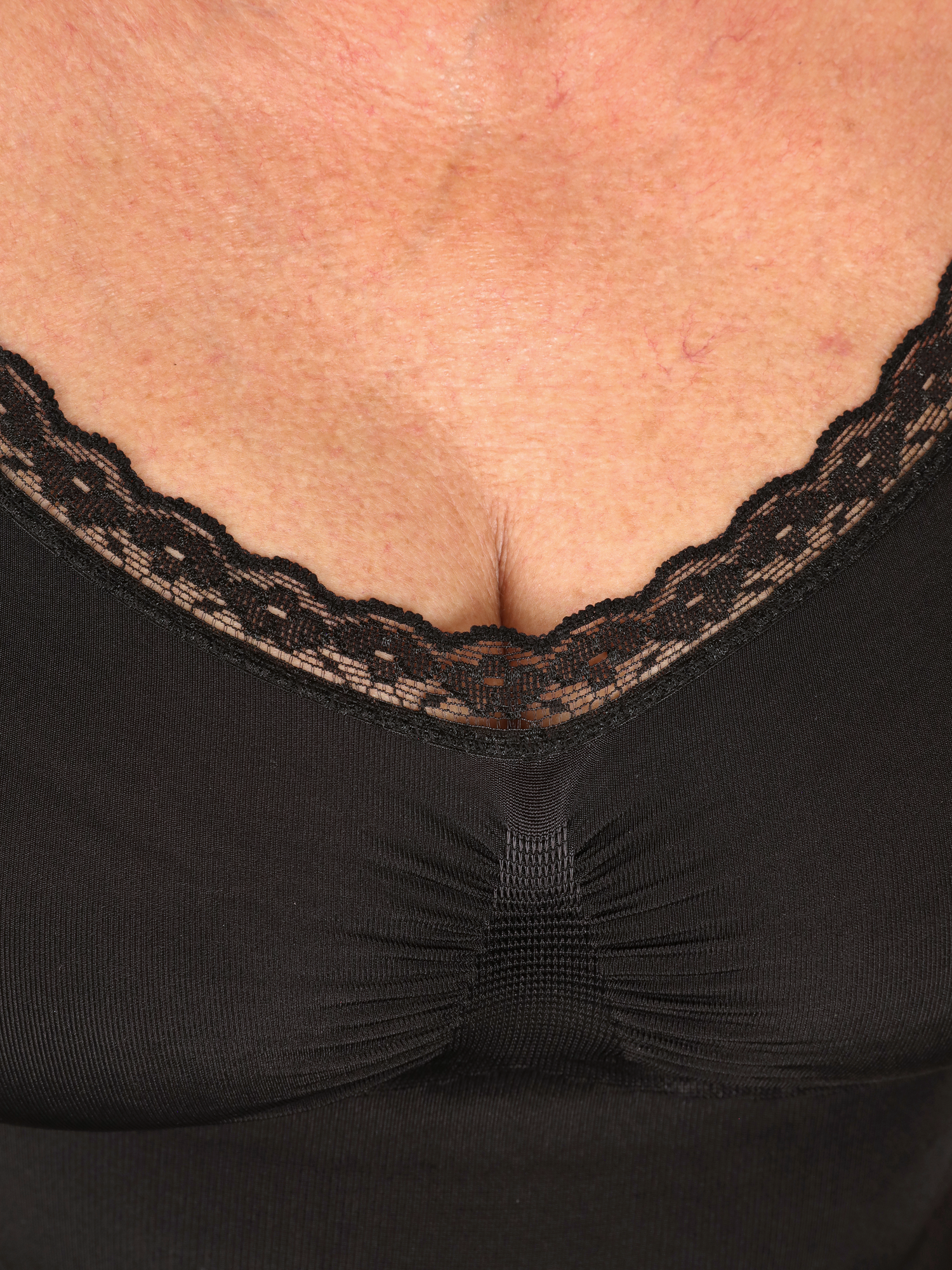 Das figurformende Top aus Glanzgarn mit Push-Up-Zone, R-Ausschnitt und stilvoller Raffung schmeichelt deiner Figur und bietet einen ausgezeichneten Sitz und Halt. Der edle Glanz-Spitzenbesatz im R-Ausschnitt- und Trgerbereich sorgt fr einen eleganten Blickfang und betont dein schnes Dekollet auf attraktive Weise.