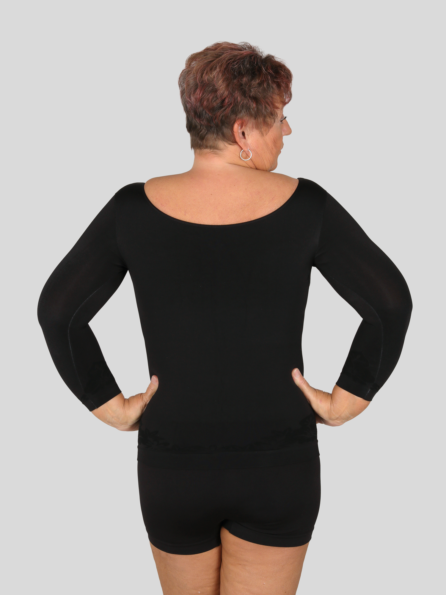 Die Push-Up-Zone im Büstenbereich bietet einen guten sowie sicheren Halt und betont dein schönes Dekolleté auf elegante Weise. Die Ärmel straffen den Bereich deiner Oberarme.